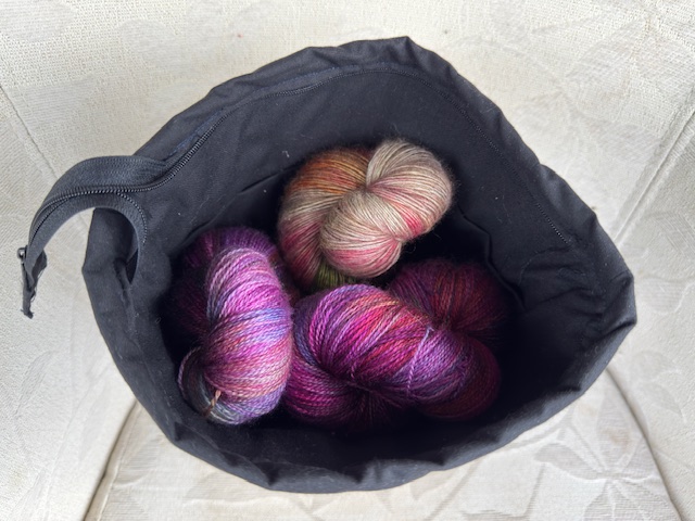 Unique hand-dyed fabric project bags for knitting & crochet. Fully lined, sturdy, and one-of-a-kind. Ideal for small to medium projects. Shop now!